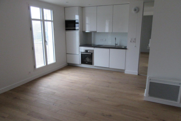 Appartement 1 pièces de 33.15m² - A LOUER - NANTES Un appartement récent de type T1 bis de 33.15m², situé au 4ème étage avec ascenseur comprenant une entrée avec un rangement, un salon-séjour, ouvert sur une cuisine aménagée et équipée (plaques, hotte, four et réfrigérateur), la partie nuit est composé d'un lit coffre, une salle d'eau avec WC et...