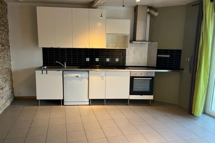 A LOUER - BOUGUENAIS - Appartement T3 de 56,14m² - Appartement T3 de 56,14m², en rez-de-chaussée, donnant sur une petite cour ouverte, le logement s'ouvre sur une pièce de vie avec cuisine aménagée et équipée (hotte, plaques, four, et lave vaisselle). 2 chambres dont une avec placard et une salle d'eau avec WC.