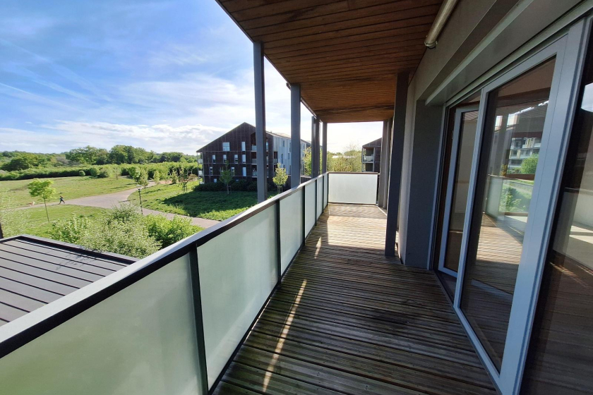 A LOUER - CARQUEFOU - LA FLEURIAYE - Appartement 4 pièces récent de 85.94 m² - Proche du bourg et des commerces. Situé au 2ème étage de cette résidence avec ascenseur, ce bel appartement de Type 4 de 85,94 m² vous offre, une entrée avec placard, WC séparé, un cellier, un séjour avec coin cuisine aménagée et équipée (plaques de cuisson et hotte), le tout donnant sur un balcon exposé plein sud, 3 chambres dont une suite parentale avec salle d'eau, et une salle de bains. Un cellier privatif sur palier.