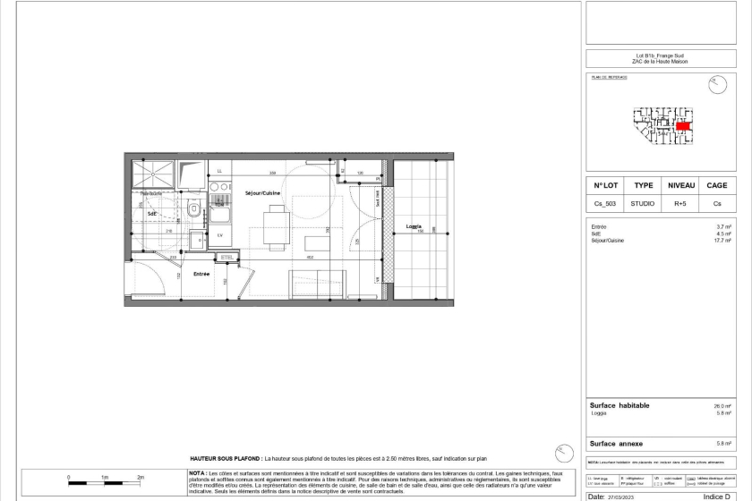 Connecté et conçu avec des matériaux de qualité. Appartement de 26m² situé au 5 -ème étage composé de :