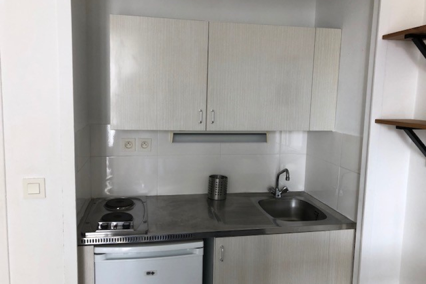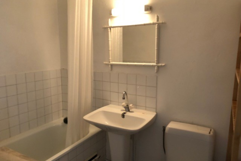 Ce logement situé au 2ème étage sans ascenseur, comprend une entrée avec placard, desservant la salle de bains avec les WC, la pièce de vie avec une kitchenette équipée (réfrigérateur, plaques de cuisson et micro-ondes). Chauffage et eau chaude individuels électriques.
