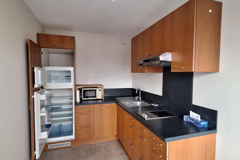 A LOUER - NANTES Bourgeonnière - T1 bis MEUBLE 35m² - Dans une résidence de bon standing à 10 min du tramway et des commerces, très agréable appartement de type 1 bis MEUBLE de 35m², situé au 4ème étage avec ascenseur. Ce logement comprend : une entrée avec placard aménagé, une pièce de vie avec un coin cuisine aménagée et équipée (meubles hauts et bas, réfrigérateur et congélateur, four micro-ondes, plaque de cuisson induction, hotte) le tout ouvrant sur un grand balcon à la vue dégagée et orientée Est, une salle de bains avec WC. Chauffage et eau chaude : individuel électrique. CAVE et PARKING.