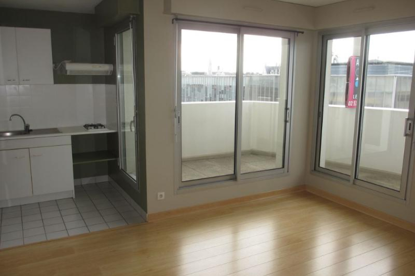 A LOUER - NANTES - CITE DES CONGRES - Appartement 2 pièces de 34.40 m² - Dans ce quartier idéalement situé aux bords du canal St Félix, à deux pas des transports (tramway ligne 1) et Busway ligne 4), de la gare, des commerces et de l'hyper centre, bel appartement de 2 pièces de 34.40 m². Situé au 6ème étage avec ascenseur de cette résidence de bon standing juste derrière le Lieu Unique, ce logement vous offre une entrée avec placard, un beau séjour avec cuisine ouverte équipée (plaques de cuisson) le tout donnant sur une terrasse avec vue dégagée sur les toits de Nantes, une chambre et une salle d'eau avec WC.