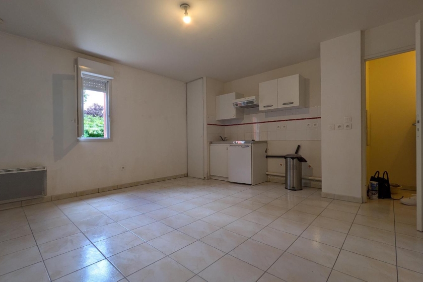 A LOUER - NANTES - T2 DALBY. - A deux pas du jardin des plantes et de la gare, dans cette résidence de 2011 au calme dans une impasse, appartement de 2 pièces de 39.80 m². Situé au rez-de-chaussée, ce logement est composé d'une entrée, d'un séjour avec coin cuisine aménagée et équipée (plaques de cuisson, hotte et réfrigérateur) le tout donnant sur la terrasse avec vue sur parc, d'une chambre avec placard et d'une salle d'eau avec WC. Place de parking. Chauffage et eau chaude individuels électriques.