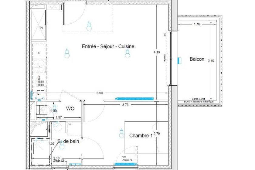 A LOUER - Appartement T2 NEUF - PINEL - PARC DE LA CHANTRERIE - Au 2ème étage d'une résidence de 2022 sans ascenseur, un appartement deux pièces de 40.30 m² comprenant une entrée donnant sur un espace séjour et cuisine aménagée, une salle d'eau, une chambre, un balcon de 6 m².