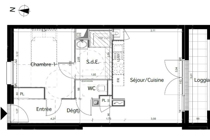 Dans une résidence neuve, un appartement 2 pièces de 43.40m² situé au 3ème étage avec ascenseur. Ce logement comprend une pièce de vie avec cuisine ouverte aménagée et équipée (plaques de cuisson, hotte) exposée sud, une chambre, une salle d'eau et WC séparés. Place de parking. Disponible fin Mai 2021.