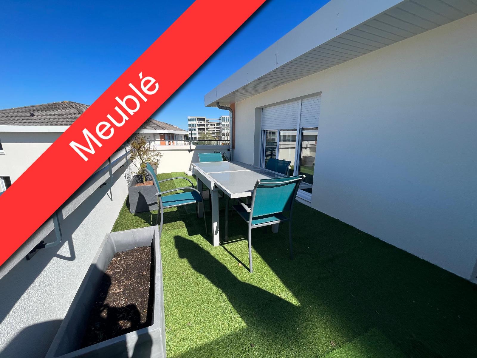 A LOUER - NANTES - ROUTE DE SAINTE LUCE - Appartement MEUBLE 2 pièces de 60m² - TERRASSE 28m² - PARKING - Un grand appartement 2 pièces meublé d'une superficie de 60m². Situé au 3ème étage et dernier étage avec ascenseur, ce logement vous offre une entrée avec cellier, un salon/séjour lumineux avec cuisine ouverte aménagée et équipée le tout donnant sur une terrasse de 28m² exposé Sud-Ouest. L'espace nuit est composé d'une chambre avec placard, une salle de bain et WC séparé.