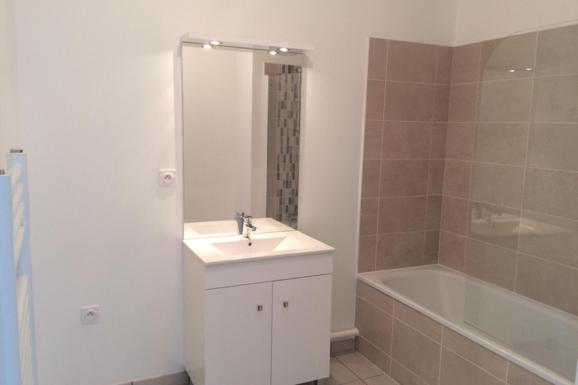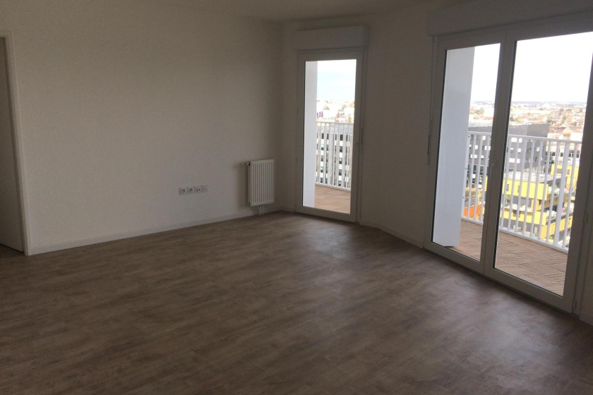 A LOUER GARE SUD- APPARTEMENT T3 de 64m² - A LOUER GARE SUD- APPARTEMENT T3 de 64m², comprenant une entrée, des wc séparés, une pièce de vie avec coin cuisine aménagée et équipé (hotte et plaques), le tout donnant sur un balcon de 34m² filant, un dégagement donnant sur une salle de bains, et deux chambres.