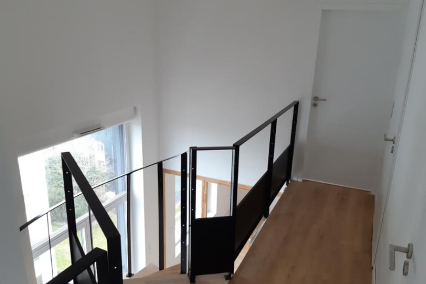 A LOUER - T3 DUPLEX - NANTES - Beaujoire - LOI PINEL - A deux pas des transports, bel appartement de 3 pièces en DUPLEX de 66.46 m². Situé au 7ème étage de cette résidence avec ascenseur, ce logement lumineux vous offre au 1er niveau une entrée avec placard et cellier, une beau séjour lumineux avec une cuisine ouverte aménagée et équipée (plaques de cuisson, hotte et four) le tout donnant sur une loggia de 7.71 m² exposée nord-ouest avec escalier pour atteindre l'étage. Au second niveau un dégagement dessert 2 chambres, une salle d'eau et WC séparés. Un stationnement privatif couvert. Chauffage et eau chaude individuels électriques.