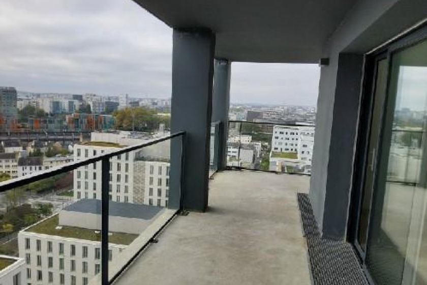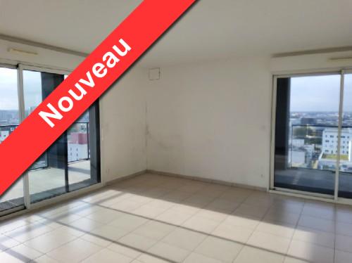 A LOUER - NANTES Gare SUD - Résidence TRYO - LOI PINEL. Appartement 3 pièces de 75 m² - Au cœur de ce nouveau quartier, à deux pas des commerces et des transports (bus, tramway ligne 1, Busway et trains), bel appartement de 3 pièces de 75 m². Situé au 16ème étage de cette résidence avec ascenseur, ce logement vous offre : une entrée avec placard, un vaste séjour de 37.70 m² avec coin cuisine aménagée et équipée, le tout donnant sur 2 loggias d'un total de 28.60 m² exposées EST/OUEST , deux chambres, une salle de bains et WC séparés.