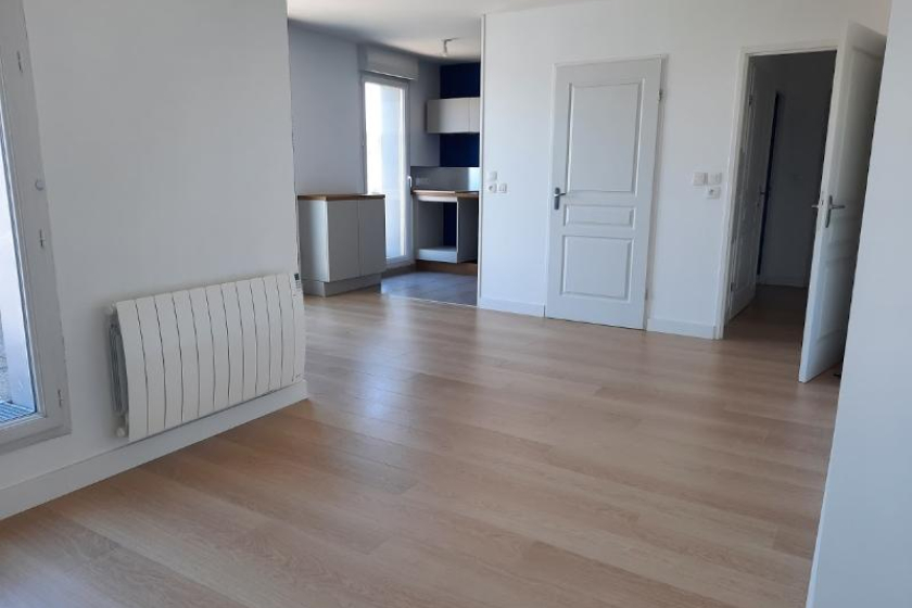 A LOUER - Orvault PETIT CHANTILLY - Appartement 3 pièces de 59 m² - Proche NANTES - Appartement de 3 pièces de 59m² environ, transports (bus, tramway) au pied de l'immeuble, et commerces à proximité. Situé au 3ème étage de cette résidence bien entretenue avec ascenseur, ce logement vous offre une entrée avec placard, un séjour lumineux avec coin cuisine aménagée, donnant sur deux terrasses séparées dont une de 12m² environ. Deux chambres dont une avec placard et une salle de bain avec WC séparé.
