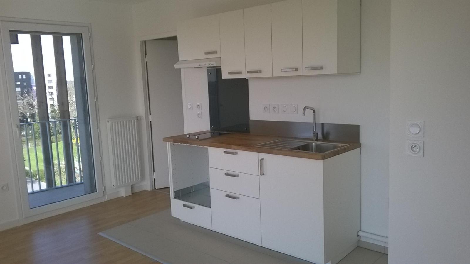 A LOUER - SAINT HERBLAIN - Appartement de 2 pièces de 43,10m² - Au cœur de SAINT HERBLAIN, à proximité des commerces. Situé au 8eme étage avec ascenseur de cette résidence de 2017, bel appartement comprenant, une entrée sur dégagement avec rangement desservant, un salon-séjour avec espace cuisine aménagée et équipée (hotte et plaques de cuisson) le tout donnant sur une belle terrasse de 16,81 m² exposée ouest, une chambres, salle de bains et WC séparés. Place de parking en sous-sol. Chauffage et eau chaude : gaz COLLECTIF.