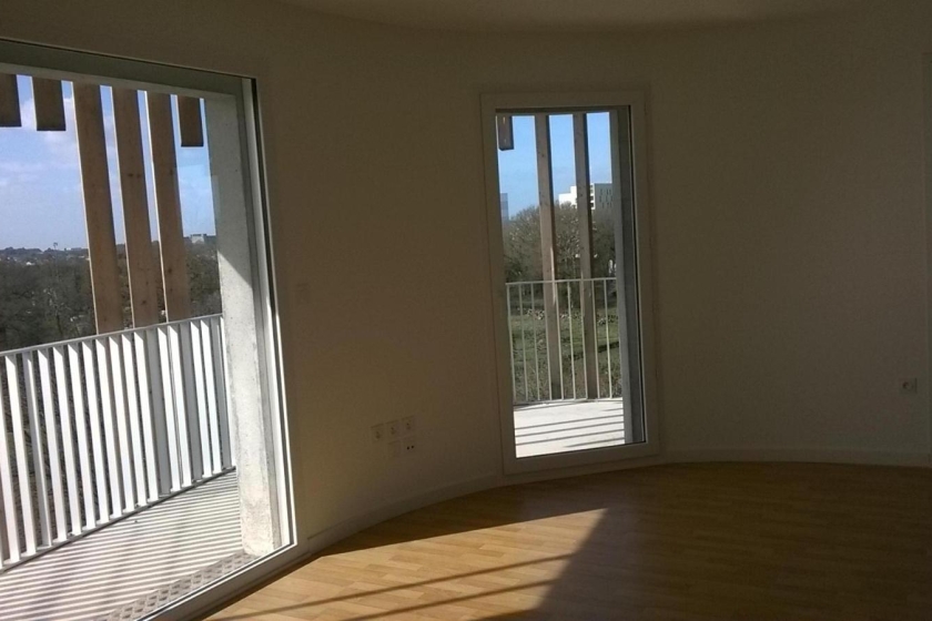 A LOUER - SAINT HERBLAIN - Appartement de 2 pièces de 43,10m² - Au cœur de SAINT HERBLAIN, à proximité des commerces. Situé au 8eme étage avec ascenseur de cette résidence de 2017, bel appartement comprenant, une entrée sur dégagement avec rangement desservant, un salon-séjour avec espace cuisine aménagée et équipée (hotte et plaques de cuisson) le tout donnant sur une belle terrasse de 16,81 m² exposée ouest, une chambres, salle de bains et WC séparés. Place de parking en sous-sol. Chauffage et eau chaude : gaz COLLECTIF.