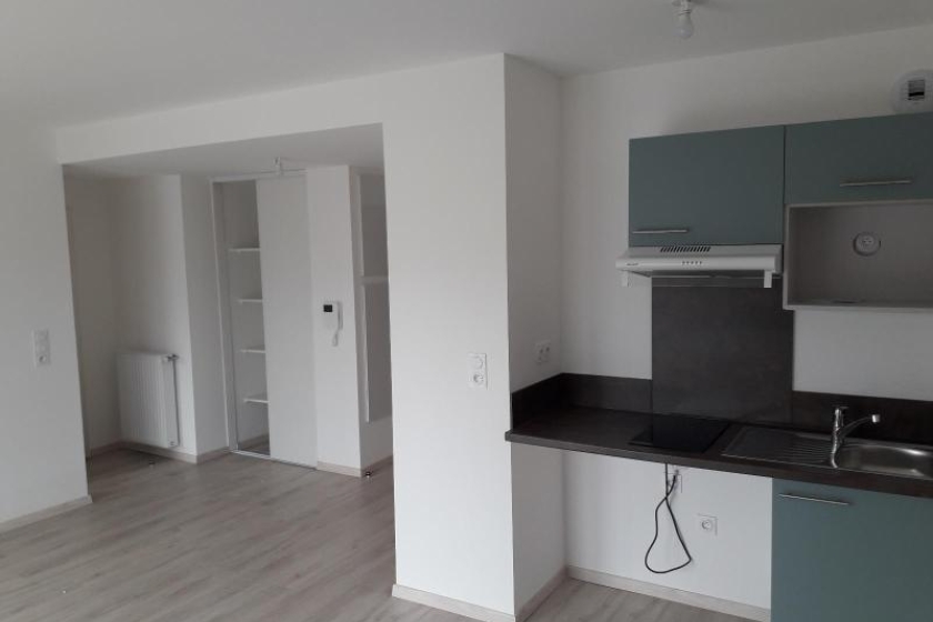 Un appartement de type 2 d'une surface de 44,25m² en rez-de-chaussée comprenant:  un cellier, une pièce de vie avec placards, une cuisine aménagée et équipée (hotte et plaques), une chambre, une salle d'eau avec wc.  Place de parking