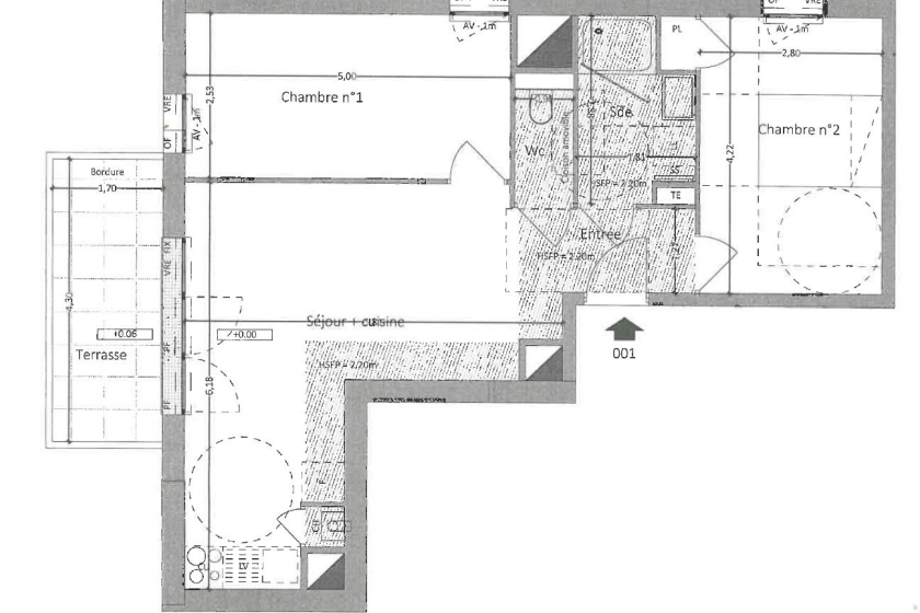 A LOUER - VERTOU Route de Nantes - Appartement T3 de 57.65m2 - Dans un quartier arboré proche de la Sèvre, appartement de 3 pièces de 57.65m² au rez-de-chaussée avec terrasse de 7.31m². Il se compose d'une entrée, de la salle d'eau et des WC séparés. La pièce de vie avec espace cuisine donne accès à la seconde chambre.