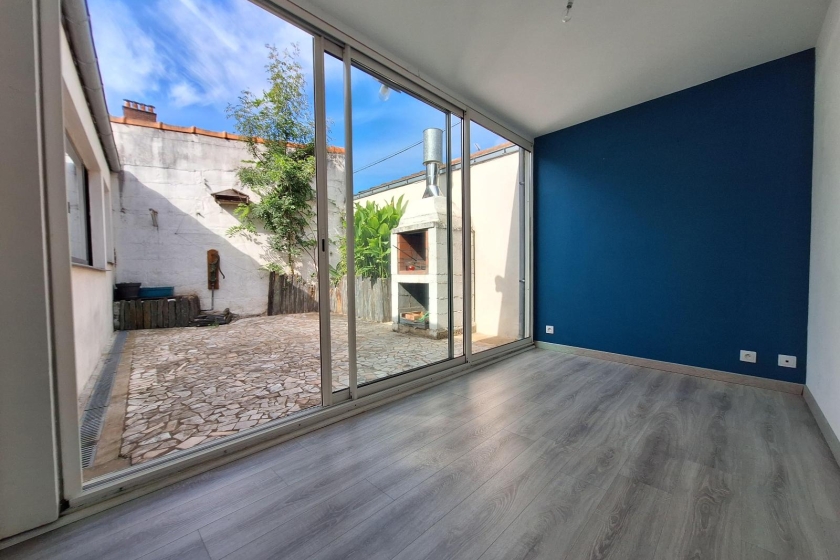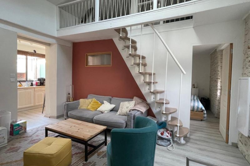 A LOUER - REZE - Maison 3 pièces meublée de 67m² - Jolie Maison de ville de 3 pièces de 67 m². Sur 2 niveaux, elle offre au rez-de-chaussée un beau séjour, une cuisine aménagée équipée (hotte, plaque, four, lave vaisselle), un cellier, une salle à manger, une salle d'eau, WC séparés, un bureau/dressing, une chambre avec placard. Une grande terrasse sans vis à vis. Au dessus du séjour, une mezzanine servant de 2ème chambre avec rangement.