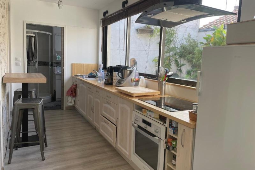 A LOUER - REZE - Maison 3 pièces meublée de 67m² - Jolie Maison de ville de 3 pièces de 67 m². Sur 2 niveaux, elle offre au rez-de-chaussée un beau séjour, une cuisine aménagée équipée (hotte, plaque, four, lave vaisselle), un cellier, une salle à manger, une salle d'eau, WC séparés, un bureau/dressing, une chambre avec placard. Une grande terrasse sans vis à vis. Au dessus du séjour, une mezzanine servant de 2ème chambre avec rangement.