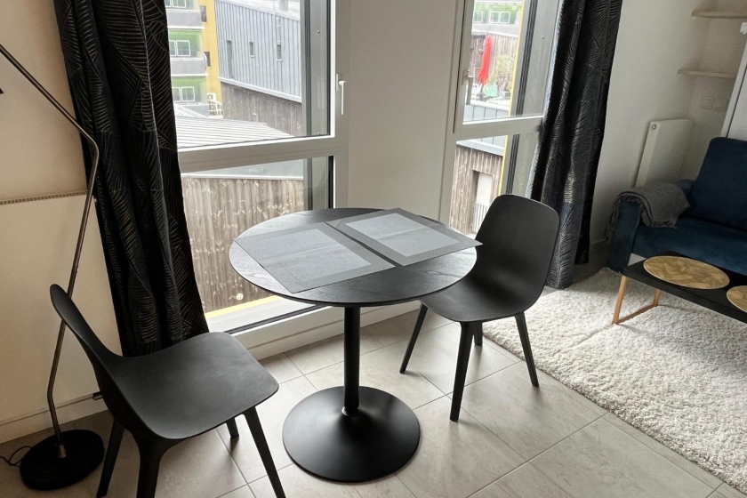 NANTES - LES MACHINES DE L'ILE - Appartement 1 pièce de 21 m² - Dans une résidence récente, un bel appartement meublé lumineux de type 1 de 21m² situé au 4ème étage avec ascenseur comprenant : une entrée avec placard, un séjour avec un coin cuisine aménagée et équipée (plaques, hotte, rangements, machine à laver, micro-onde), une salle d'eau avec WC.