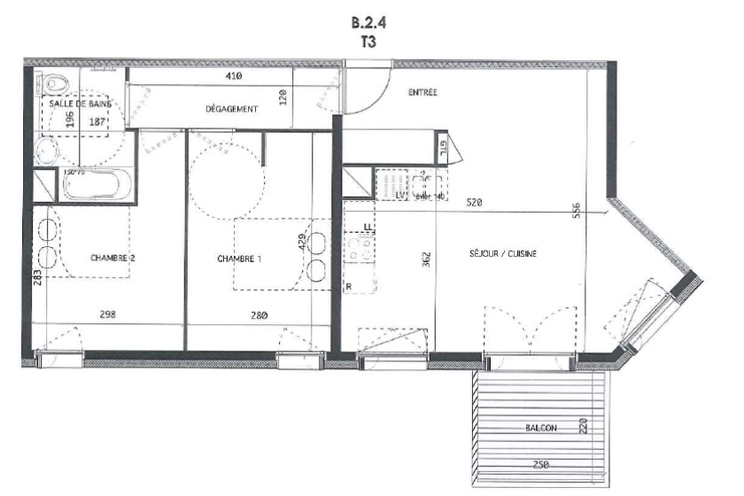 NANTES Parc de la Chézine - T3 de 62m² AVEC BALCON et PARKING - Dans une résidence de 2015 située à l'entrée du Parc de la Chézine, à proximité des transports (chronobus C6, bus 20), et des commerces. Un appartement 3 pièces de 62m² situé au 2ème étage avec balcon de 5.50m², comprenant : une entrée, un salon avec une cuisine ouverte aménagée et équipée, 2 chambres, une salle de bains avec WC. Ce logement dispose également d'une place de parking en sous sol.