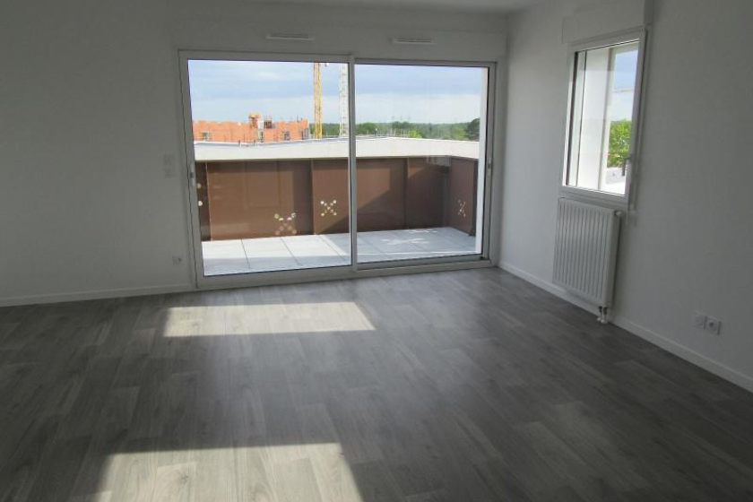 A LOUER - REZE - CITY SQUARE - Appartement (B.43) 3 pièces de 63,20 m² - DEUX parkings - Terrasse - Dernier étage - Au coeur de Rezé, à 3 km du centre ville et à proximité des commerces. Situé au 4ème et dernier étage avec ascenseur, bel appartement de type 3 de 63,20 m² comprenant, une entrée avec placard desservant, un séjour avec espace cuisine aménagée et équipée (frigo, plaques de cuisson et hotte) le tout donnant sur un balcon de 7,10 m² exposé plein sud, deux chambres, cellier, salle de bain et WC séparé. DEUX places de parking en sous-sol.