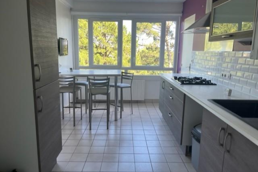 A LOUER - SAINT HERBLAIN Le Golf - Appartement T4 79.48m² - Bel appartement T4 de 79.27m² situé au 6ème étage avec belle vue dégagée sans vis à vis comprenant une grande entrée, une cuisine aménagée équipée (four, hotte, plaque) et un cellier, un séjour sur balcon, un dégagement, un WC séparé, une salle de bain, et trois chambres dont une avec dressing et une avec placard.