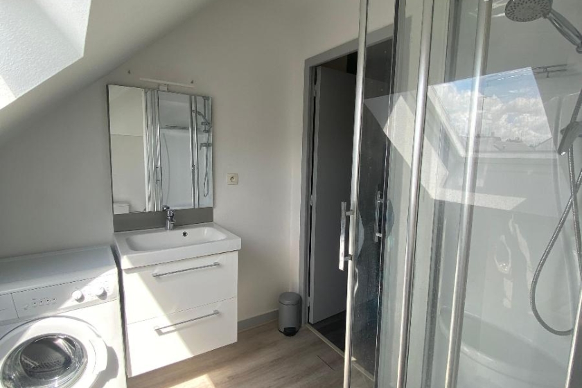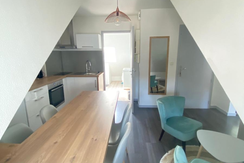 Un appartement de type T2bis d'une surface de 47.38m² (25m² en carrez) au deuxième et dernier étage comprenant un séjour et coin cuisine, une chambre, un bureau, une salle d'eau avec wc.