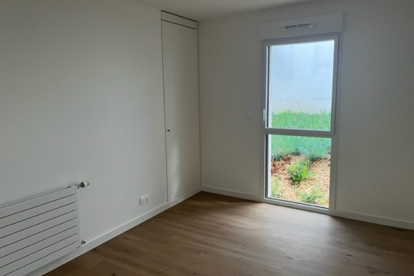 A LOUER - VERTOU Route de Nantes - Appartement T3 de 57.65m2 - Dans un quartier arboré proche de la Sèvre, appartement de 3 pièces de 57.65m² au rez-de-chaussée avec terrasse de 7.31m². Il se compose d'une entrée, de la salle d'eau et des WC séparés. La pièce de vie avec espace cuisine donne accès à la seconde chambre.