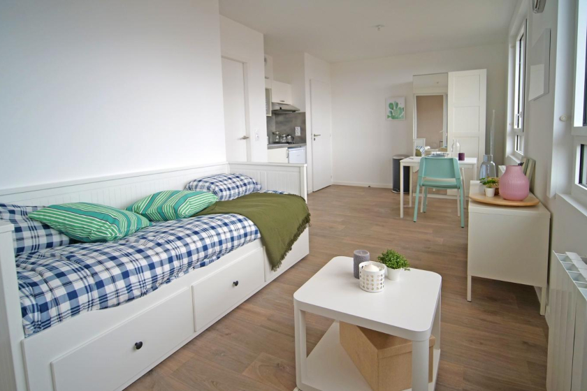La résidence dispose également d'une laverie partagée, d'une terrasse partagée et d'un espace de convivialité avec un coin détente et/ou de travail. L'ensemble est équipé et connecté au Wi-Fi !