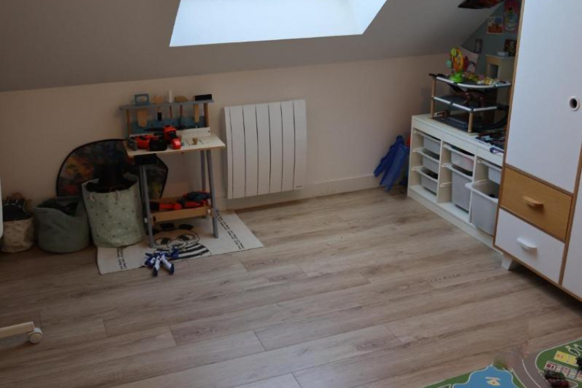 Au 1er étage, deux chambres dont une avec dressing, un bureau, une salle de bains avec douche et baignoire. Au dernier étage, deux chambres et sanitaires.
