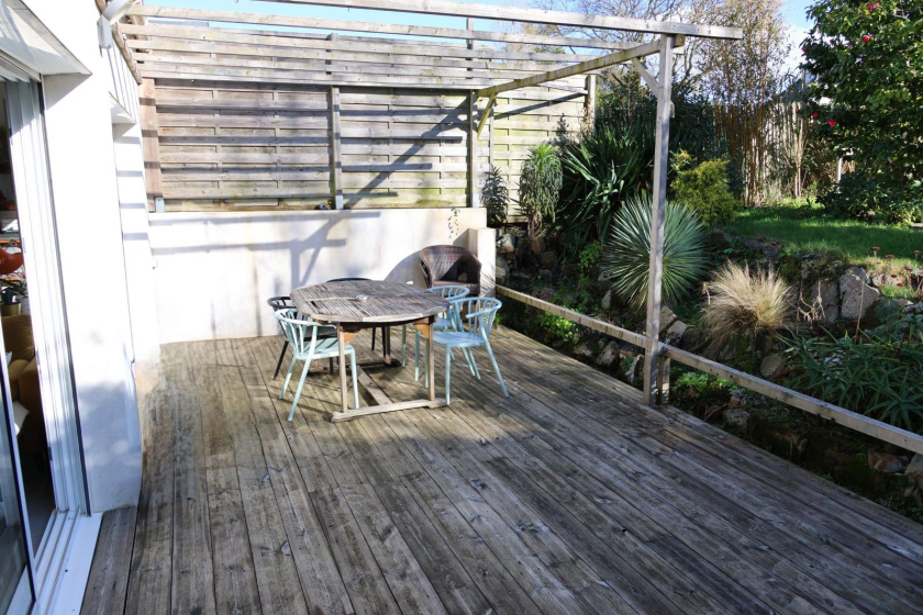 Maison d'habitation meublée de type 5 d'une surface de 131m² comprenant une entrée, une buanderie avec douche, une pièce de vie avec une cuisine aménagée et équipée donnant sur un jardin cloc et arboré avec sa terrasse en bois.
