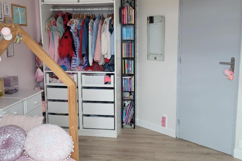 Au 1er étage, deux chambres dont une avec dressing, un bureau, une salle de bains avec douche et baignoire. Au dernier étage, deux chambres et sanitaires.